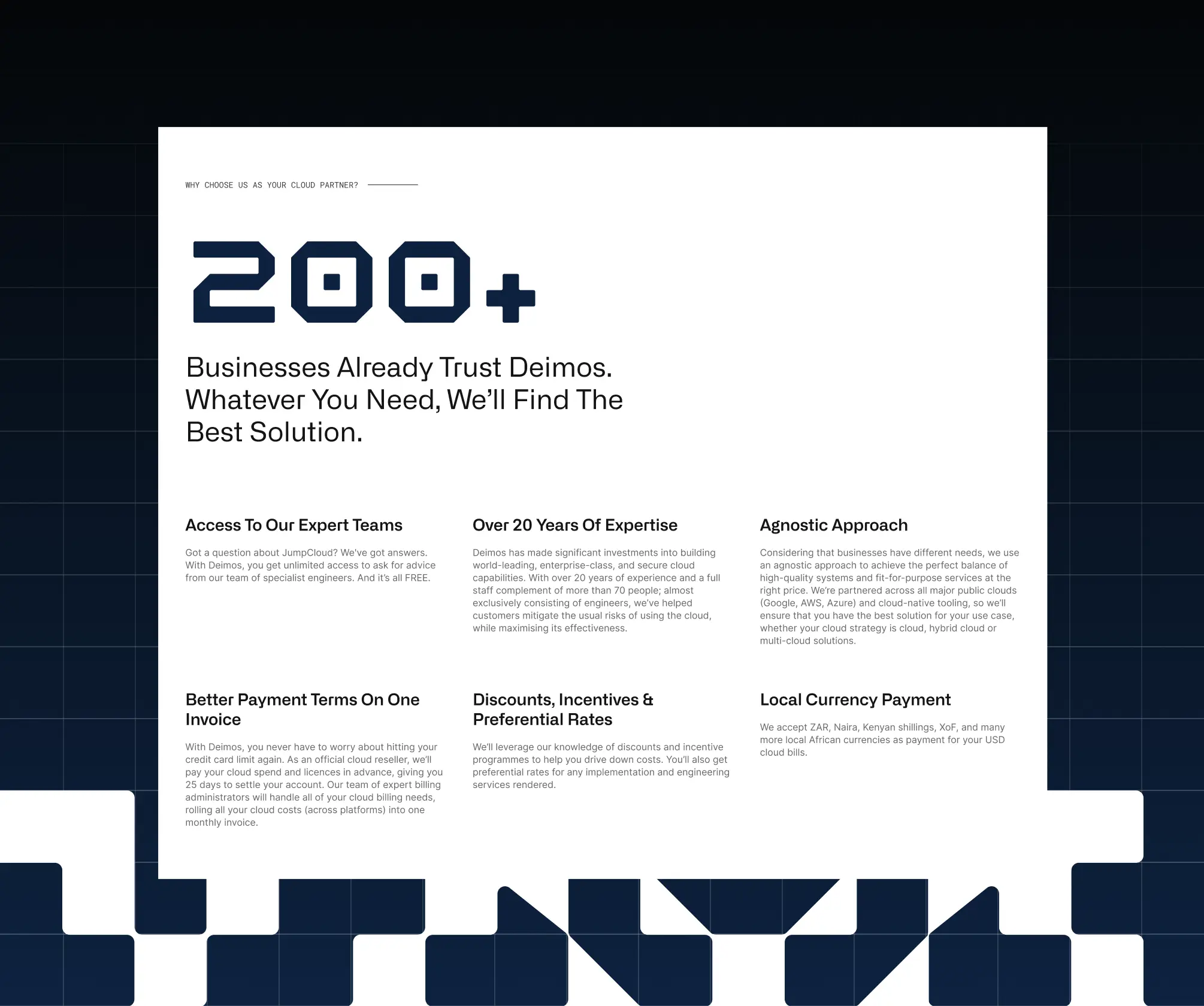 Deimos is a cloud engineering company helping businesses securely scale through DevOps, SaaS, and cloud solutions. Recognised by the Financial Times as one of Africa’s fastest-growing tech companies in both 2024 and 2025, they partnered with Defijn to design and build a new marketing website aimed at strengthening their sales pipeline and driving B2B lead generation. The site was strategically crafted to speak directly to CTOs, CFOs, and other decision-makers, positioning Deimos as a trusted leader in secure, scalable cloud solutions.